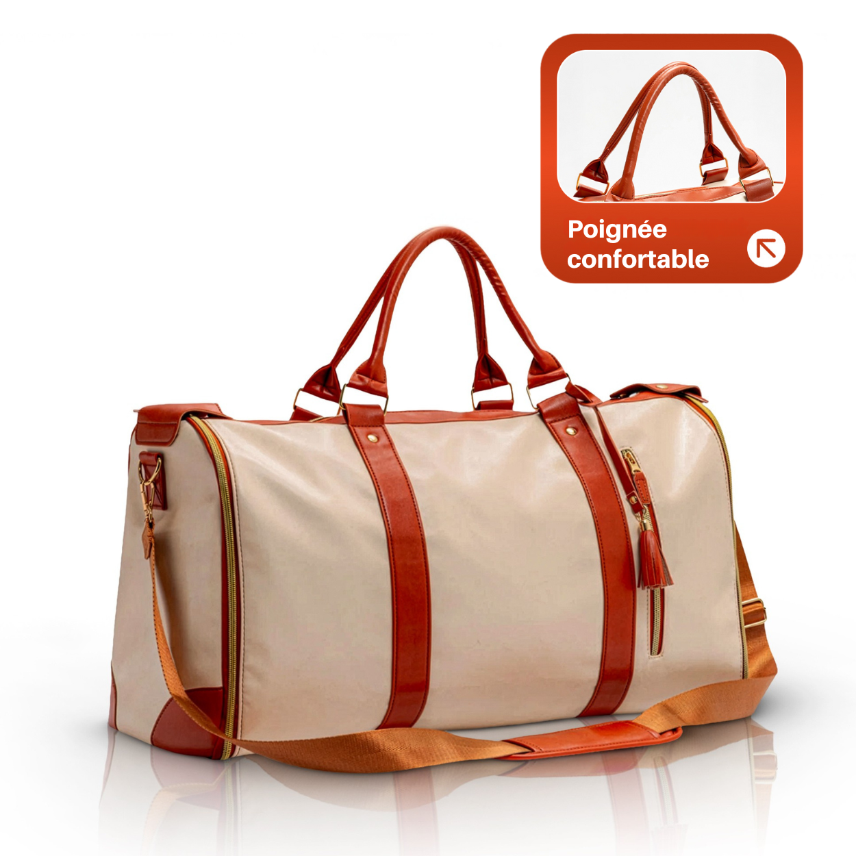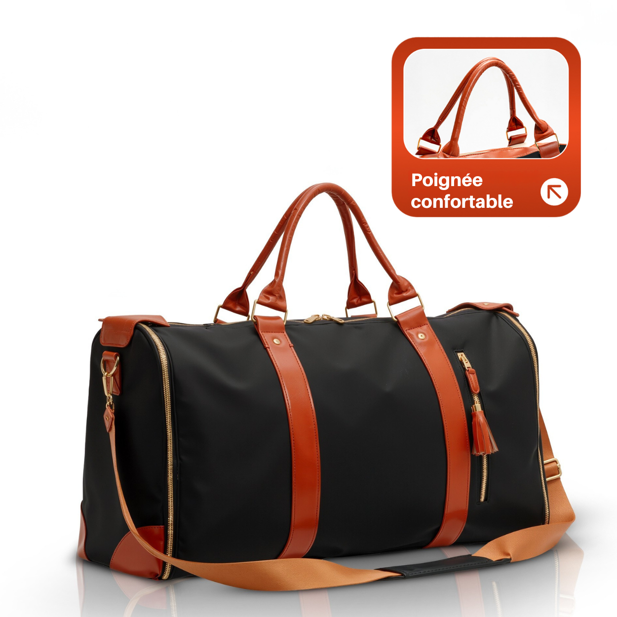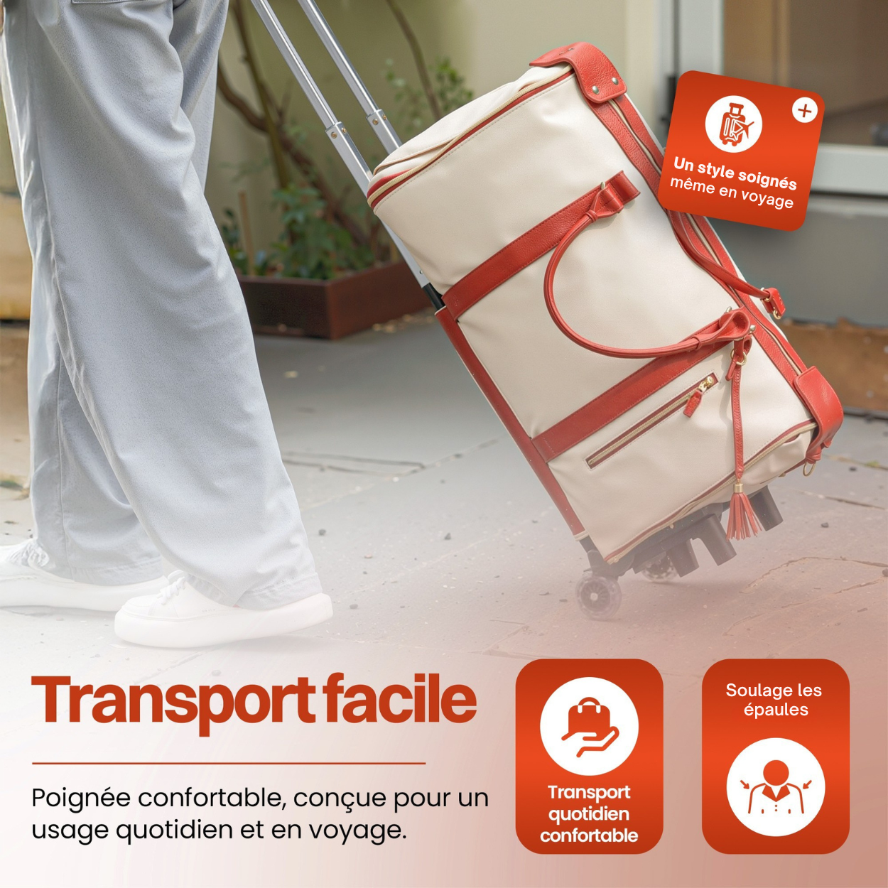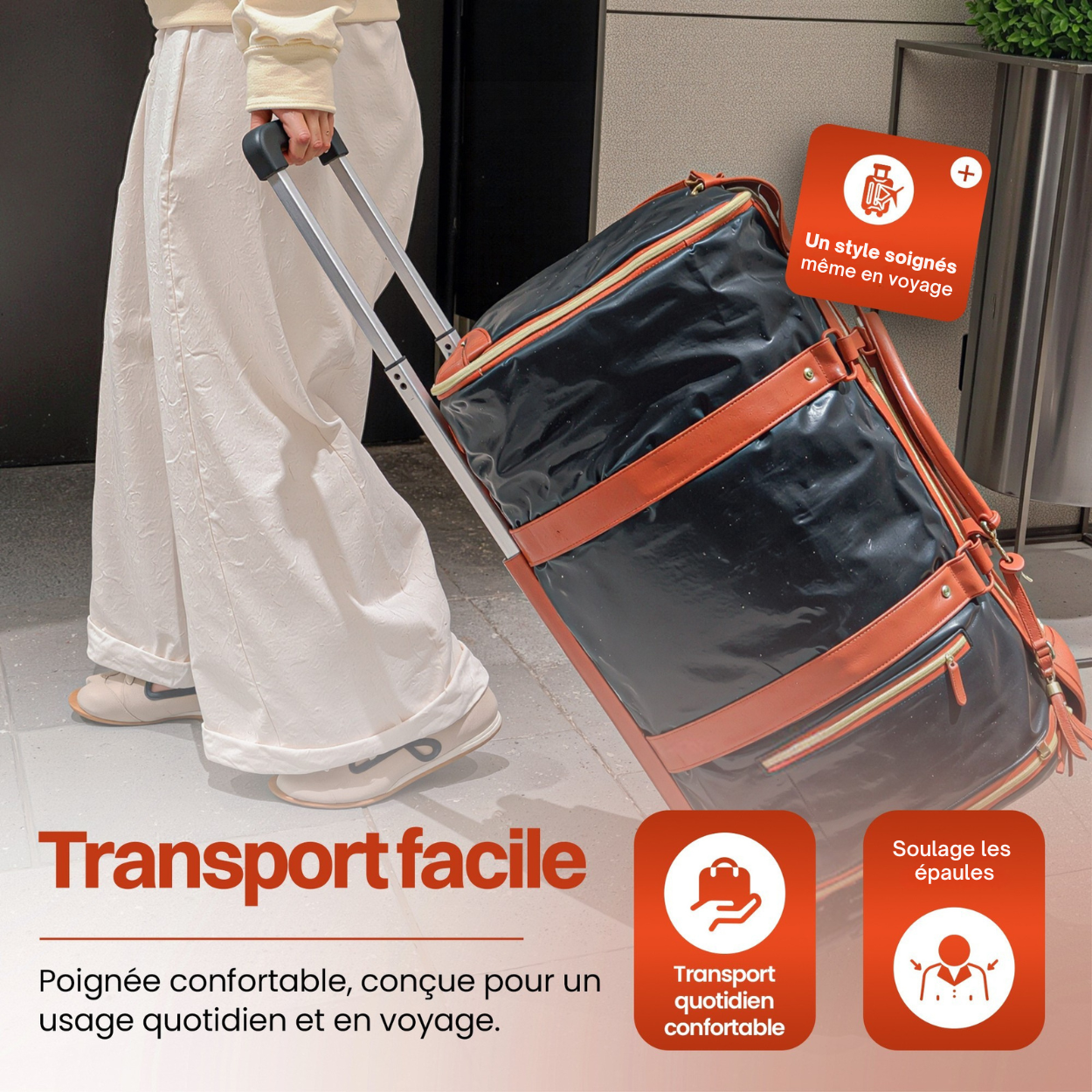 Spacieux et solide en voyage, la poignée tient bien même chargé.