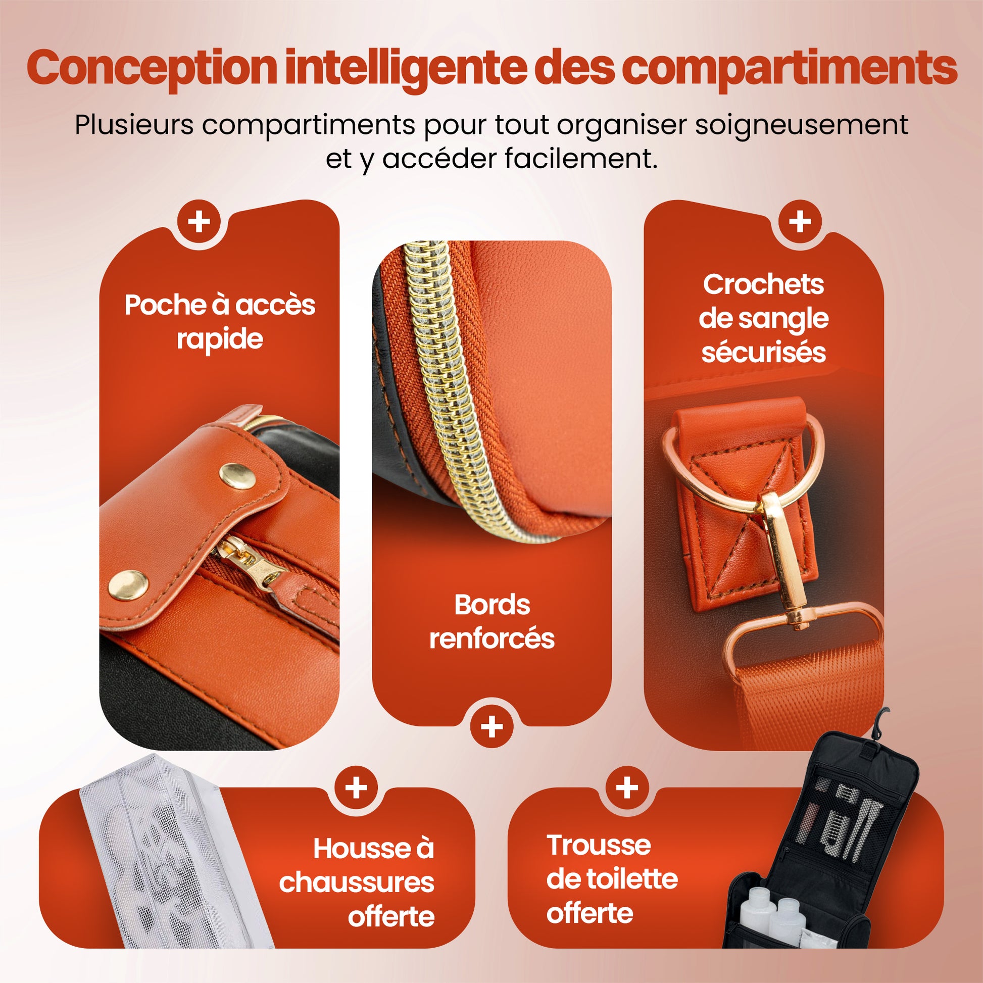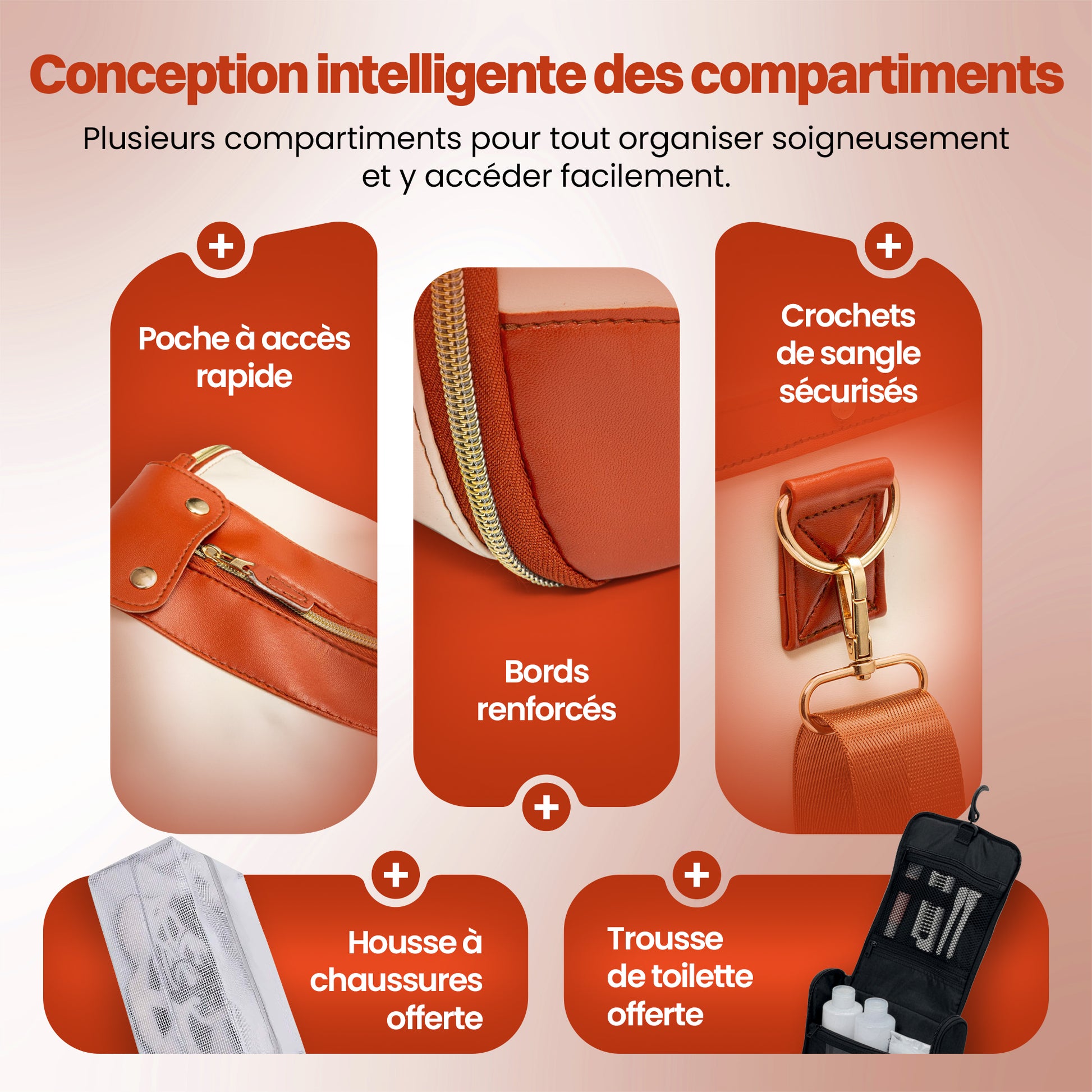 Les fermetures éclair renforcées et la sangle ajustable garantissent confort et longévité, même lors de voyages fréquents.